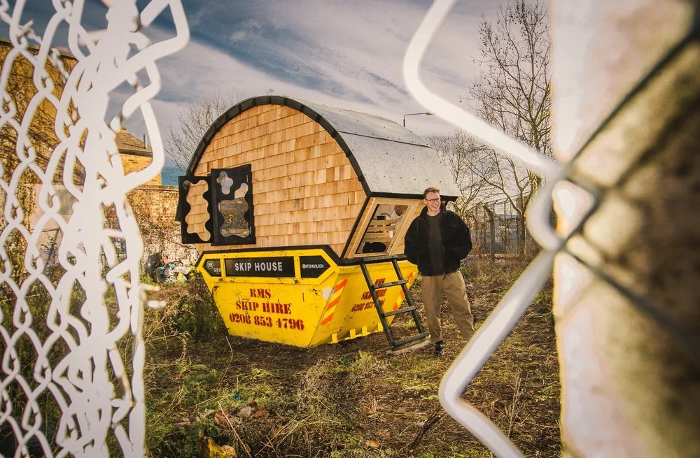 Part art installation, part social commentary, the Skip House aims to start a conversation about the UK’s housing crisis and explore alternative solutions. The project is part of SKIP Gallery, an ongoing collaborative public art initiative started to create much needed space, opportunities, funding and advocacy for emerging artists, in a bid to combat the exclusive nature of the art world and more typical gallery spaces. The brief was to convert a skip into a liveable space - fit for sleeping, cooking, washing and even hosting a friend or two.